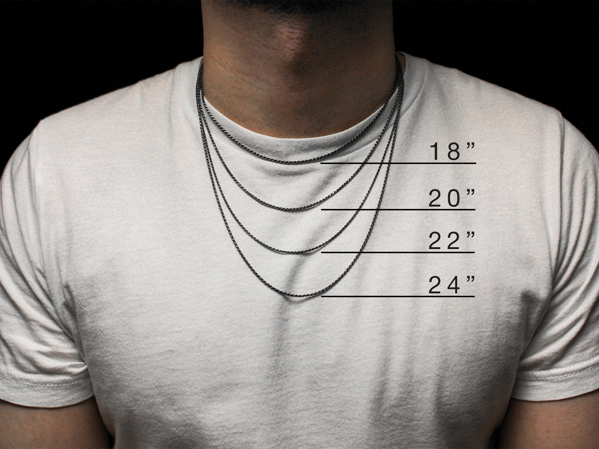 If you are uncertain about selecting an appropriate chain size, I recommend measuring a piece of string to determine the desired length. Place the string around your neck, aligning it with the chosen length, and assess in a mirror to ensure it hangs at the anticipated height.